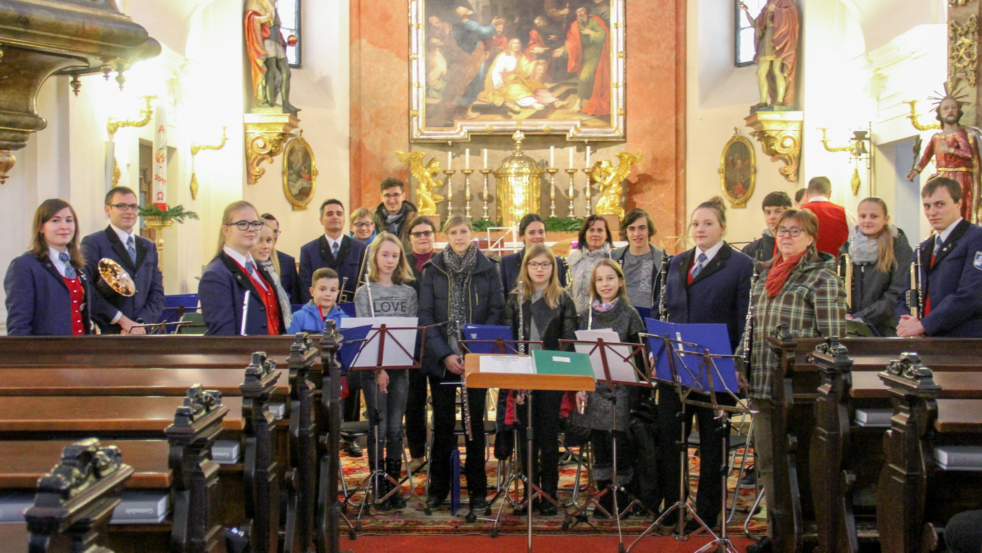 Der Musikverein selbst konnte diesmal sogar mit zwei Solostücken aufwarten – „Gabriel’s Oboe“ hervorragend dargeboten von Elisabeth Hergovich sowie der „Serenade für Posaune“ mit einem glänzend aufgelegten Ehrenkapellmeister Helmut Lang auf seiner Posaune! Mit den weiteren Stücken wie „Don’t cry for me Argentina“ und der James Bond Titlemelodie „Skyfall“ bewies unser Kapellmeister Wolfgang Fasching wieder sein Händchen für ein begeisterndes Konzertprogramm für unser Publikum.