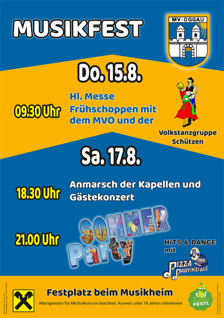 Die Vorbereitungen für unser Musikfest laufen auf Hochtouren und wir freuen uns, Sie als Besucherinnen und Besucher am Donnerstag, 15.8. sowie am Samstag, 17.8. begrüßen zu dürfen.