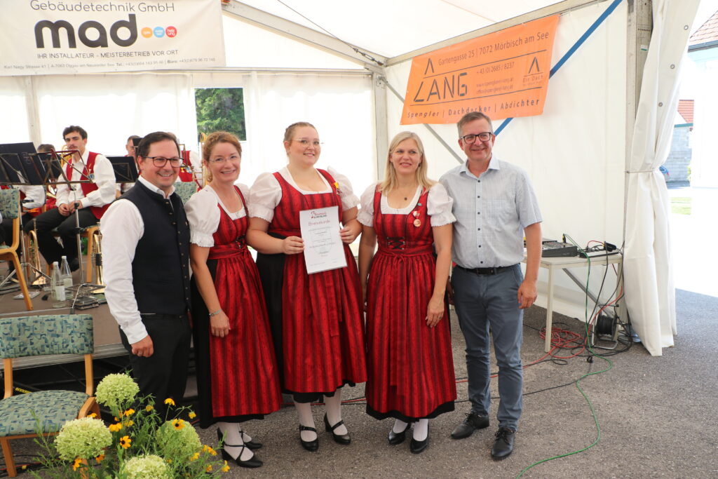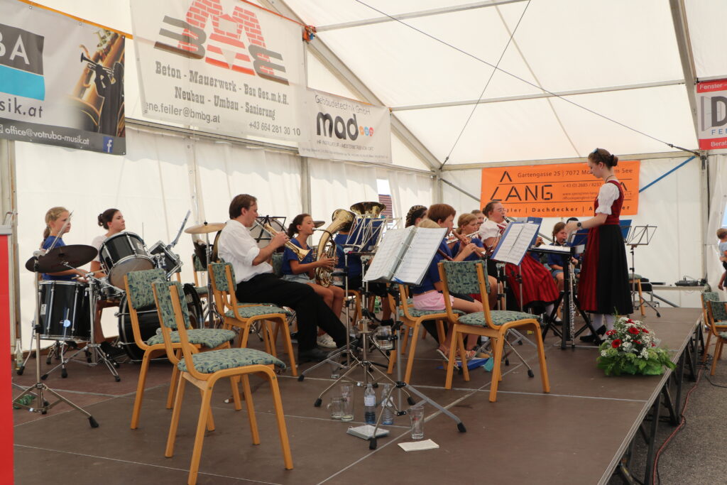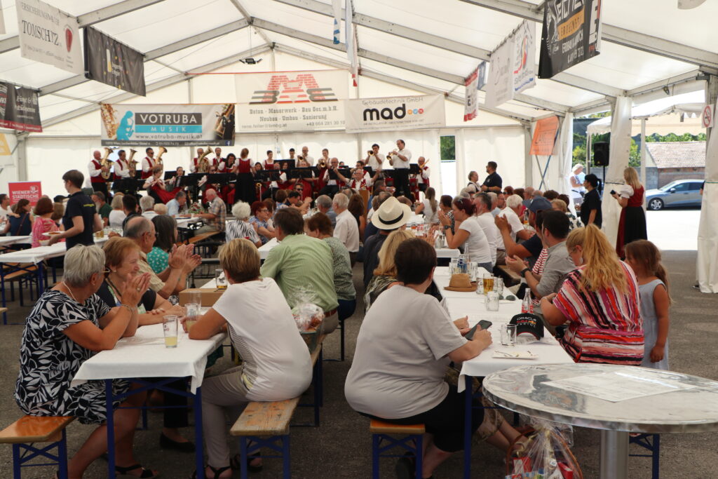 Wie jedes Jahr veranstaltete der Musikverein Oggau Mitte August sein Musikfest, welches einen Höhepunkt in unserem Vereinsjahr bildet. Am 15. August wurde das Musikfest nach der Heiligen Messe mit einem Frühschoppen vom MVO durch Kapellmeisterin Cornelia Schiebendrein eröffnet. Auch unsere Nachwuchsmusiker die „Schildtröten“ unter der Leitung von Lena John überzeugten das Publikum mit ihren einstudierten Stücken. Nach einem entspannten Nachmittag am Freitag, begrüßten wir am Samstag unsere diesjährigen Gastkapellen. Der Musikverein Müllendorf und Die erste Burgenländische Trachtenkapelle Donnerskirchen reisten aus der Umgebung an. Eine besondere Freude war für uns der Besuch der Johannser Dorfmusik, die aus St. Johann in Engstetten aus Niederösterreich für unser Fest angereist sind. Nach einem Sternmarsch vor dem Musikheim kam bei den Gästekonzerten schon ausgelassene Partystimmung im Festzelt auf. Am Abend sorgte „Pizza Provinziale“ für die Musik und eine volle Tanzfläche.